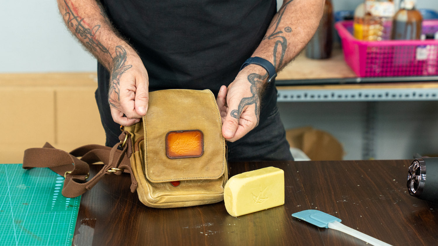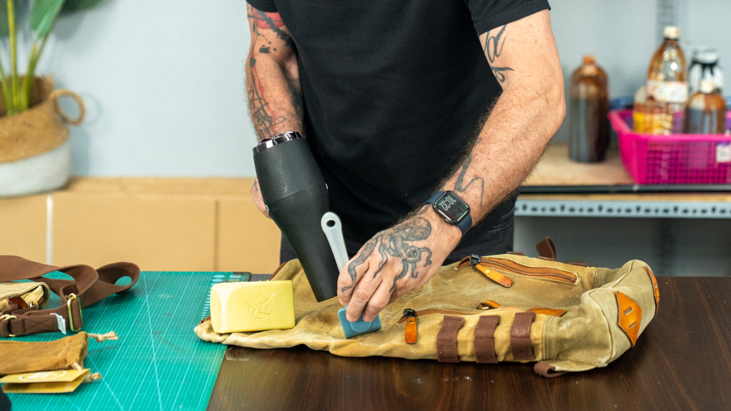 - Ensure that wax is getting into vulnerable spaces like seams and joins. We don't recommend waxing the inside of the item. Rub the wax into the fibres using your hands - especially finger tips -or a tool such as a silicon spatula.